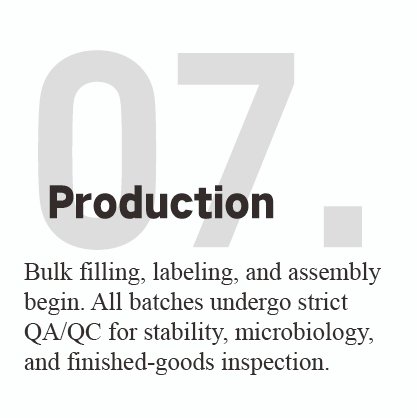 Our factory, which specializes in cosmetic manufacture OEM and ODM, is equipped with innovation, automation, and smart-factory technologies to run a smooth and safe supply chain.